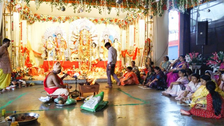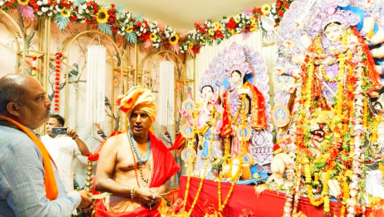 भिलाई। नवमीं के दिन बुधवार को हाऊसिंग बोर्ड कालीबाड़ी में भक्तिभाव और सांस्कृतिक उत्साह का संगम देखने को मिला। दुर्ग ग्रामीण विधायक एवं राज्य ग्रामीण तथा ओबीसी क्षेत्र विकास प्राधिकरण के उपाध्यक्ष ललित चंद्राकर यहां पहुंचे और मां दुर्गा तथा मां काली की पूजा-अर्चना कर क्षेत्र की खुशहाली की कामना की। उन्होंने श्रद्धालुओं को भोग भी वितरित किया। विधायक ललित चंद्राकर ने कहा कि यह आयोजन धार्मिक आस्था के साथ-साथ सामाजिक एकता और सौहार्द का प्रतीक है। नवमीं पर आयोजित सांस्कृतिक कार्यक्रम में जॉय भट्टाचार्य, पौलमी चटर्जी और पार्थ बनर्जी ने सुमधुर गीतों से माहौल को और भी भक्ति रस से सराबोर कर दिया। इस मौके पर कालीबाड़ी दुर्गा पूजा एवं शिक्षा समिति की अध्यक्ष काजल चक्रवर्ती, महासचिव विद्युत चौधरी, अनुप घोष समेत बड़ी संख्या में श्रद्धालु मौजूद थे।