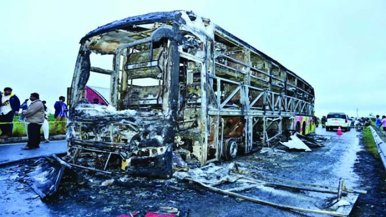 नई दिल्ली। आंध्र प्रदेश के कुरनूल जिले में शनिवार तड़के एक भीषण सड़क हादसे में 20 लोगों की मौत हो गई। यह हादसा चिन्नातेकुर के पास हुआ, जब हैदराबाद जा रही एक निजी बस की टक्कर सामने से आ रही बाइक से हो गई। टक्कर इतनी जोरदार थी कि बाइक बस के नीचे फंस गई और उसका फ्यूल टैंक फट गया। कुछ ही पलों में बस में आग लग गई और वह पूरी तरह जलकर खाक हो गई। पुलिस के मुताबिक, हादसे के वक्त बस में करीब 41 यात्री सवार थे।