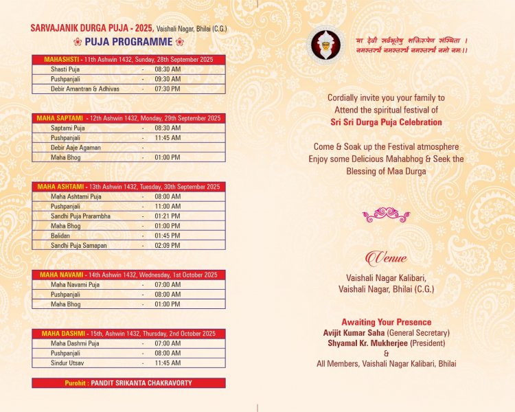नवरात्र पर्व को भिलाई में विशेष रूप से मनाया जाता है। विभिन्न कालीबाड़ी एवं दुर्गा पंडालों में सुबह से ही श्रद्धालुओं का तांता लगा रहा। इस अवसर पर विधायक यादव ने भक्तों के बीच पहुंचकर भक्ति भावना को साझा किया। वे विभिन्न स्थानों पर आयोजित भंडारे में भी शामिल हुए, जहां उन्होंने माता के भक्तों को महाप्रसाद अपने हाथों से वितरण किया। प्रसाद वितरण के दौरान विधायक ने भक्तों से बातचीत भी की और उनके सुख-दुख साझा किए।