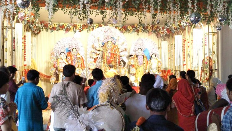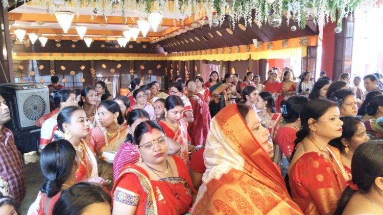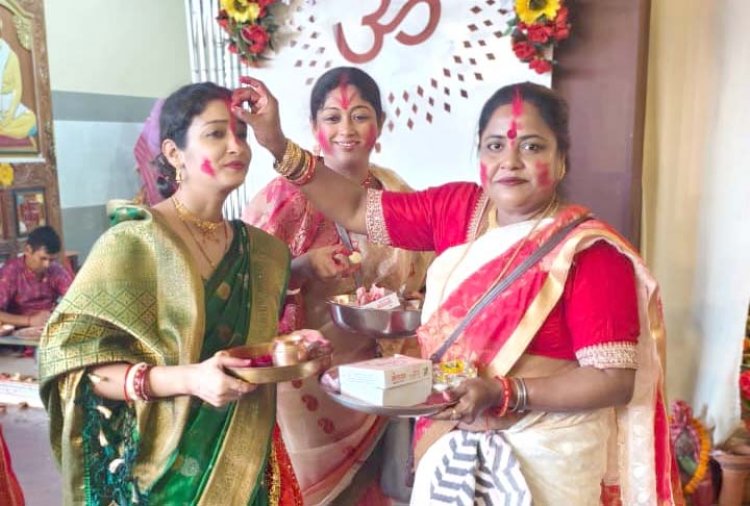 हाऊसिंग बोर्ड कालीबाड़ी में सिंदूर खेला, मां दुर्गा से सुख-समृद्धि और परिवार की खुशहाली की कामना