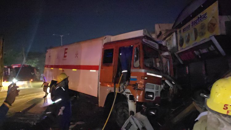 ट्रांसफार्मर पोल से बारूद भरी ट्रक टकराने के बाद लगी आग, भिलाई में आधी रात को टला बड़ा हादसा